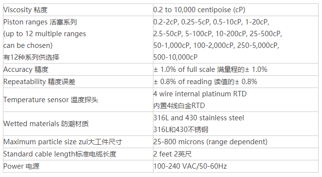 Cambridge Viscosity VISCOlab 4000粘度計規(guī)格說明:
