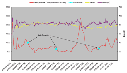 巴西的Petrobras公司進行了實地試驗,跟蹤運動學粘度(即組合測量絕對粘度和密度)和溫度。結果讓人印象深刻, 第一次該公司可以很容易的看到在他們的過程中發生了什么。
