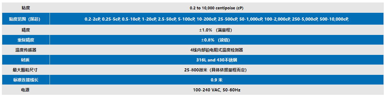 2、可在12個重疊的20:1粘度范圍內進行測量。粘度可顯示為厘泊(cP)或厘斯托克斯(cSt),溫度可顯示為攝氏度(℉)或華氏度(℃)。