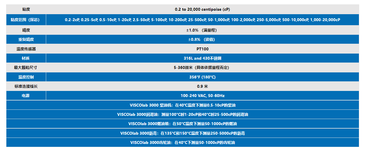 2.VISCOlab3000實(shí)驗(yàn)室粘度計(jì):當(dāng)粘度測試需要在特定溫度下測試樣品材料時(shí),劍橋粘度公司的ViscoLab 3000粘度計(jì)是理想選擇。ViscoLab 3000就是所需的全部——不需要單獨(dú)、笨重、響應(yīng)速度慢的水浴系統(tǒng)。應(yīng)用領(lǐng)域包括研發(fā)、質(zhì)量控制實(shí)驗(yàn)室和測量VI指數(shù)的機(jī)油粘度。